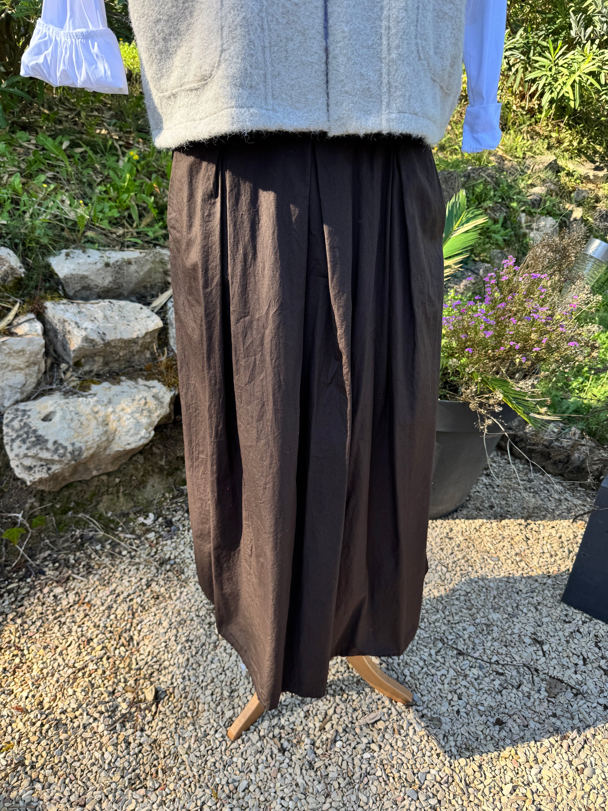 Adoptez l’élégance sans effort avec cette jupe longue au joli tomber fluide. Sa coupe ample et ses plis plats sur le devant ajoutent du mouvement à chaque pas. La ceinture à passants, associée à une taille élastiquée à l’arrière, assure un confort sur-mesure, tandis que la longueur à la cheville change selon votre taille pour sublimer votre silhouette avec légèreté et style.